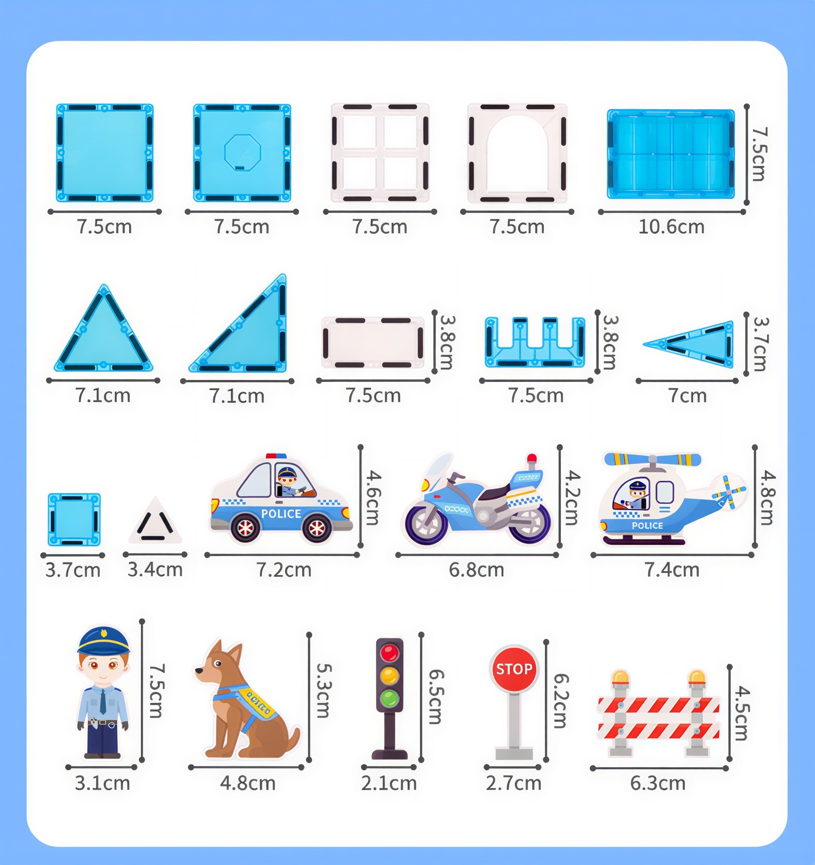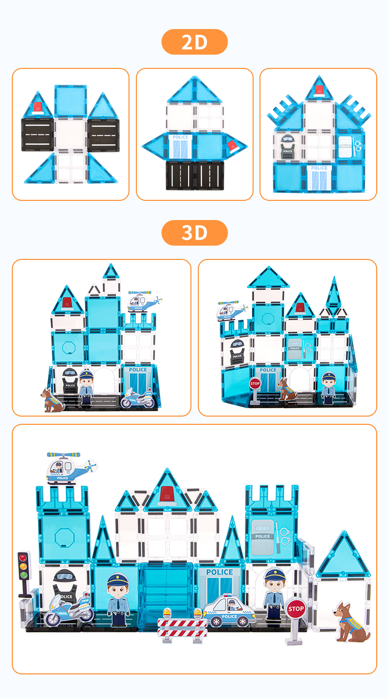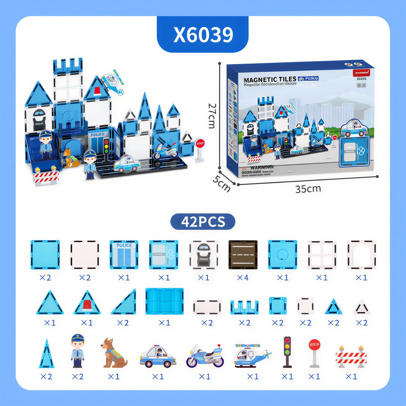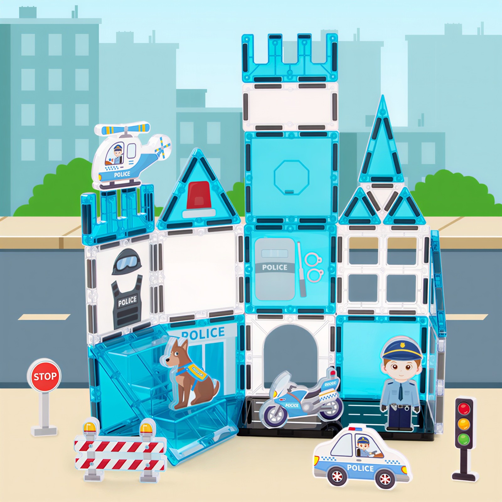 Set constructii magnetice LELINO Fantasy Police 42 buc