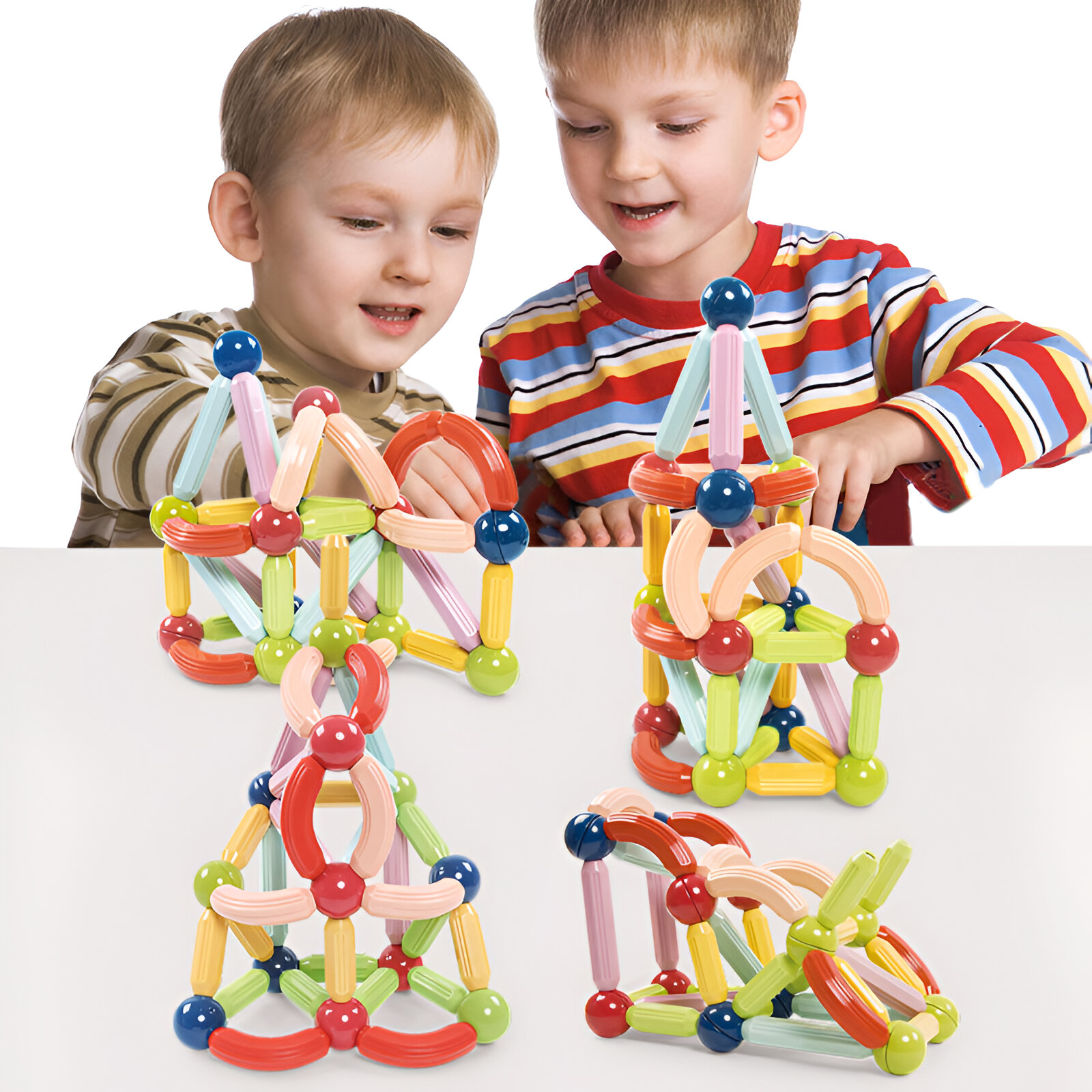 Piesele se conectează ușor datorită magneților puternici, permițând copiilor să creeze diverse forme, căsuțe, turnuri, castele sau chiar lucrări artistice originale. Un set de construcție magnetică combină distracția, creativitatea și estetica, dezvoltând motricitatea fină, imaginația și simțul pentru frumos.
